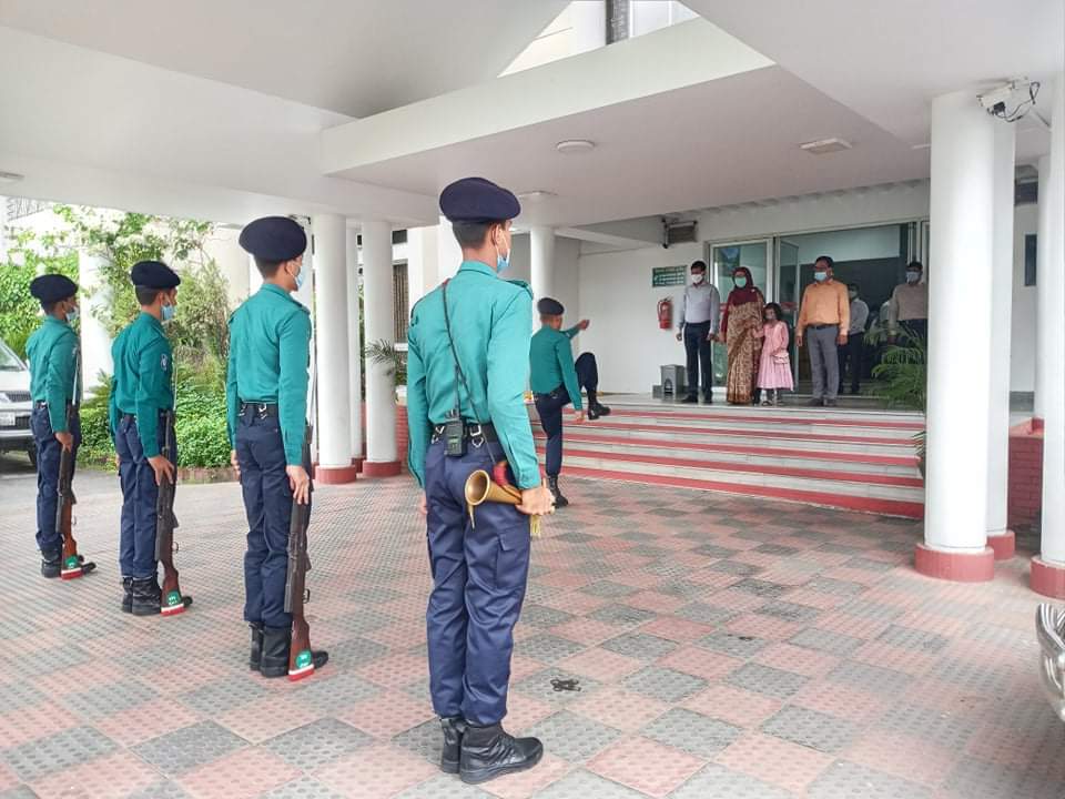 পুলিশের একটি চৌকস দল গার্ড অব অনার প্রদান করেন